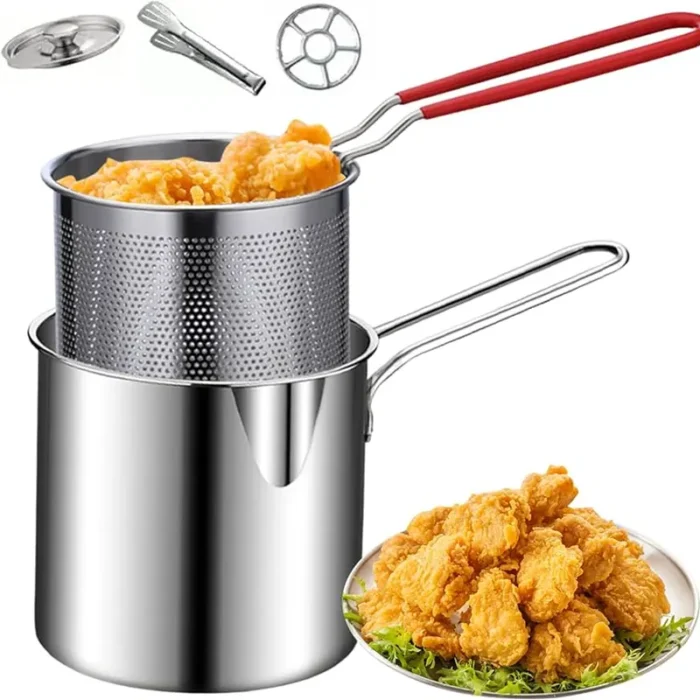 ফুল সেট: ১টি ডিপ ফ্রায়ার পট, ১টি ফিল্টার বাস্কেট, ১টি স্টোভটপ র্যাক, ১টি ঢাকনা, ১টি টংস