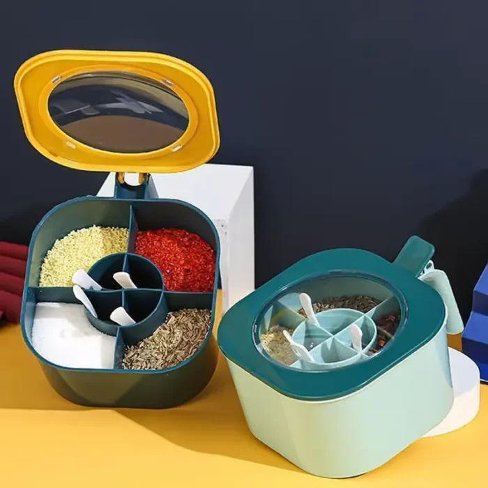 12 reviews for Multi Storage 4 Section Kitchen Spices Lid Box With Spoons pice Storage Spice Containers with Serving Spoons Spices Storage Box